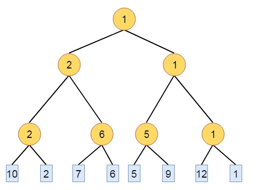 假設有一些鍵,10、2、7、6、5、9、12、1。因此,我們將首先建立最小獲勝樹。
