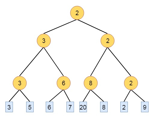 獲勝樹是一個完全二叉樹,其中每個節點都代表其兩個子節點中較小或較大的節點,稱為獲勝樹。根節點儲存樹中最小的或最大的節點。錦標賽樹的獲勝者是在所有序列中第 n 個最小或最大的鍵。很容易看出,獲勝樹可以在 O(log n) 時間內形成。