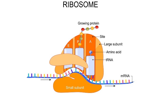 在延伸過程中,核糖體讀取mRNA上的密碼子並將相應的氨基酸新增到不斷增長的蛋白質鏈中。