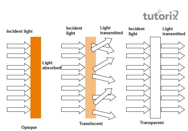 任何物體的透光性完全取決於物體的基本材料。如果物體允許100%的光線透過,則稱為透明物體;如果物體的透光能力小於100%,則為半透明物體。另一方面,如果物體由一種能夠完全阻擋光線透過的材料製成,則稱為不透明物體。