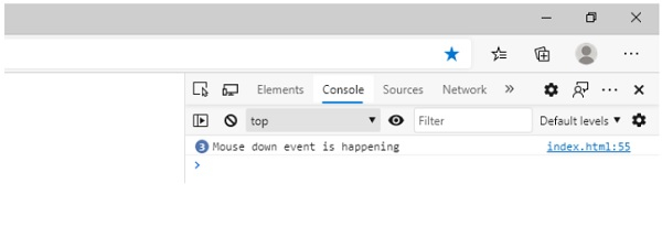 當您單擊滑鼠時,該事件將生成。控制檯輸出如下所示 -