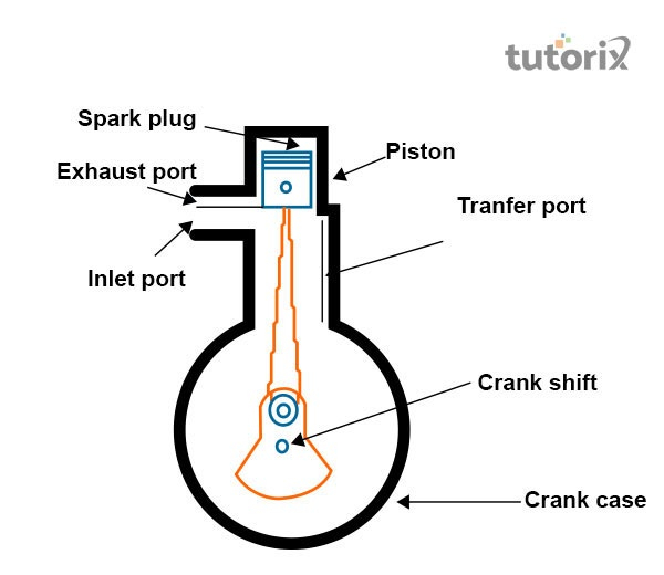 發動機中有一個火花塞,它將電流釋放到燃燒室,進一步幫助點燃空氣燃料混合物,導致氣體快速膨脹。曲軸上有一個平衡重,可以減少由於旋轉部件不平衡而產生的振動。有兩個具有不同功能的獨立埠,這些埠稱為進氣口和排氣口,這些埠通常有助於新鮮空氣和燃料進入和離開氣缸。