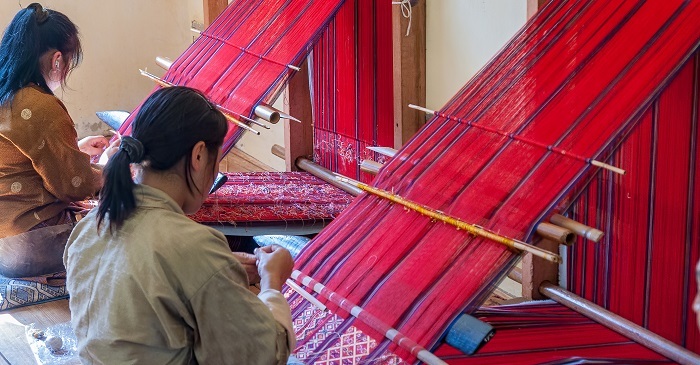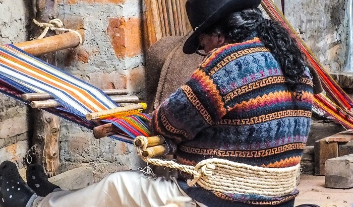 揹帶式織布機是一種簡單的織布機,由古代文明創造,至今仍在許多國家使用。一端,經線系在一個固定的物體上,另一端系在織布者身上。經線由織布者的重量保持繃緊。熟練的織布者可以使用揹帶式織布機製作精美複雜的圖案。