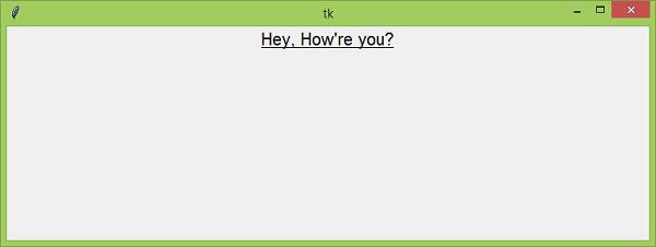 label= Label(win, text= "Hey, How're you?", font= ('Helvetica 15 underline'))