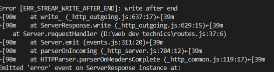 });在上面的程式碼中,我們只有 `res.end()`,如果 `end()` 函式之後有任何程式碼修改了響應物件,就會導致執行時錯誤。