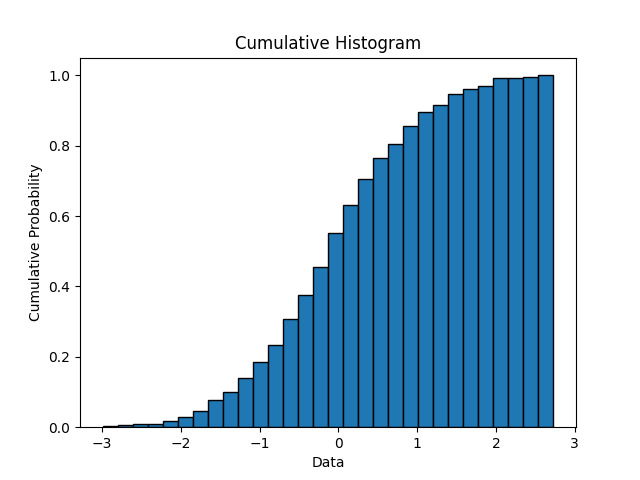 此直方圖用於視覺化資料的累積頻率或累積機率分佈。它為我們提供了不同閾值下資料分佈的詳細資訊。此直方圖顯示了當我們在 x 軸上從左向右移動時資料是如何累積的。
