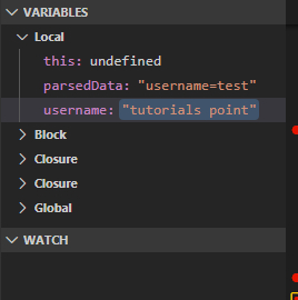 在變數部分,開發人員可以透過雙擊其值並進行編輯來更改變數的值。這將直接更改應用程式執行時,並會影響值。