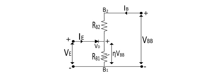 電阻 RB1 是發射極和 B1 區域之間棒的電阻。它的值是可變的,並且取決於 pn 結上的偏置電壓。