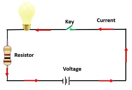 電路或器件中的重要可變引數是電流、電壓和電阻。格奧爾格·西蒙·歐姆在研究透過導體的電流時發現,由於電壓的增加,電流變數也會增加。這意味著當溫度變數恆定時,這兩個變數成正比,即: