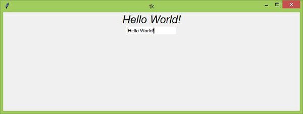 執行以上程式碼將顯示一個帶有輸入小部件和一個 Label 的視窗。每當我們在文字控制元件中輸入一些文字時,該 Label 便會更新該文字。