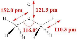 圖 2:丙酮分子的結構式,$\mathrm{Me_2CO\:或\:C_3H_6O}$
