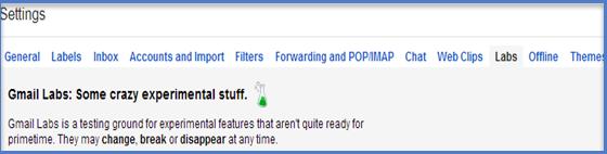 在“設定”中,轉到頂部欄上的“實驗室”選項卡。