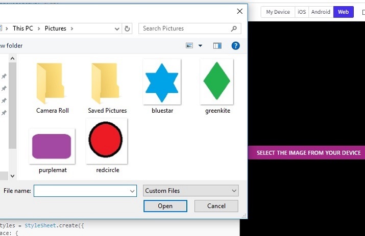 結果可以線上檢視。當用戶輸入程式碼時,Web 檢視會預設被選中,結果會立即顯示。當用戶點選按鈕時,會開啟從計算機中選擇圖片的資料夾。當用戶選擇影像時,它會顯示在螢幕上。如果使用者在移動裝置上使用該應用程式,ImagePicker 會提供從移動裝置中選擇圖片的選項。兩種情況下的結果都顯示在此處。