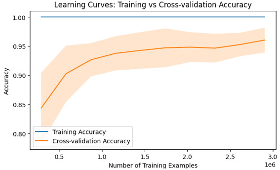 #The plot with title “Learning curves: Training vs Cross-Validation Accuracy”