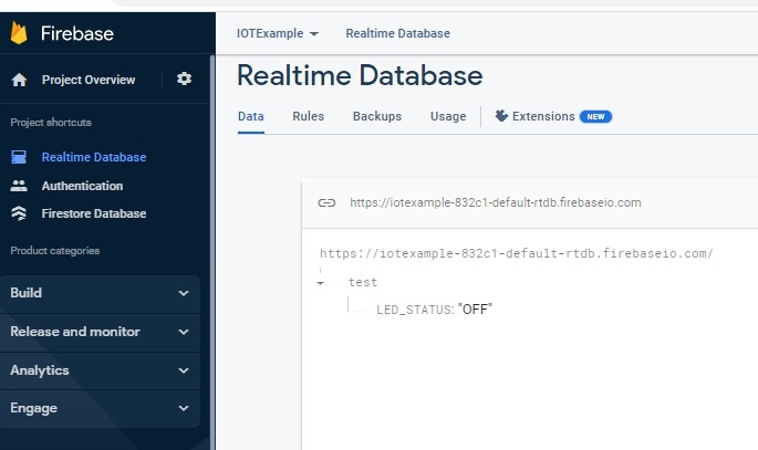 步驟 2 − 專案啟動後,在左側選單中,轉到即時資料庫。建立一個即時資料庫,並找到 DATABASE_URL 並將其寫入 C 程式。