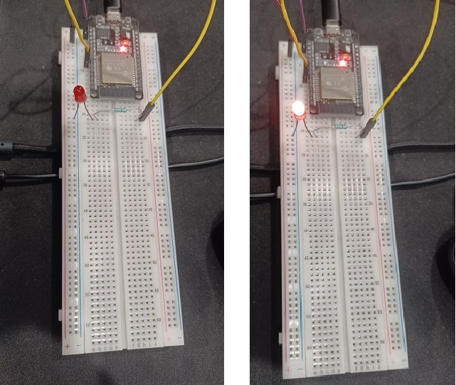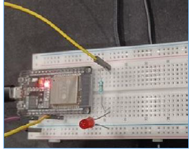 該電路使用一個 LED 和 ESP32 製作。黃線連線到 D18 引腳。