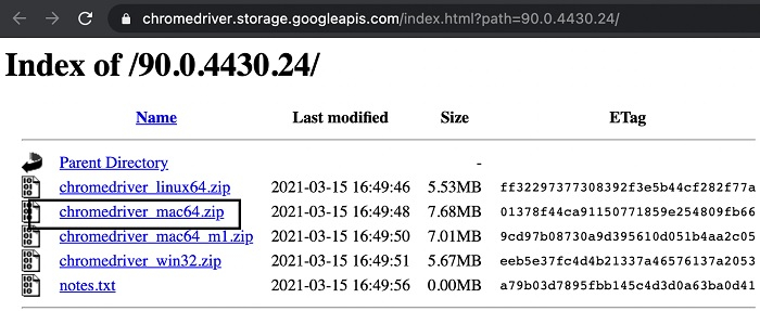 第 2 步 − 點選適用於 Mac 作業系統的 chromedriver 連結。