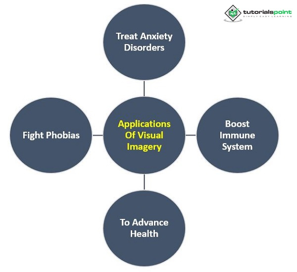 許多認知心理學以外的心理學家對將心理影像應用於其他心理學領域感興趣。這些應用包括引導意象方法來管理疼痛、增強免疫系統和促進健康。使用這些方法,人們可以想象自己正在一個美麗的海灘上放鬆,而疼痛則消失在遠處。或者,他們可以想象你的免疫系統的細胞成功地消除了你體內的每一個病原體。這些方法可以克服心理問題,包括恐懼症和其他焦慮症。許多科學家和技術人員,包括設計工程師、生物化學家和物理學家,都使用影像來考慮不同的結構和過程,並解決其專業領域中的問題。
