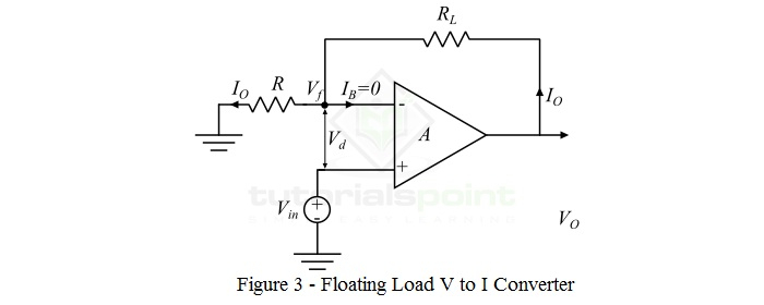 顧名思義,在該型別的電壓電流轉換器中,負載電阻在轉換器電路中保持浮動,被稱為**浮載電壓電流轉換器**。“浮載”表示負載電阻未連線到地。浮載電壓電流轉換器的電路圖如圖3所示。