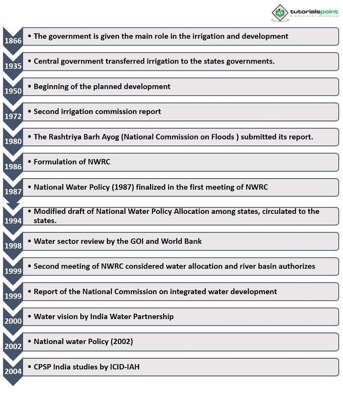 以下是印度政府水政策演變過程中的時間順序: