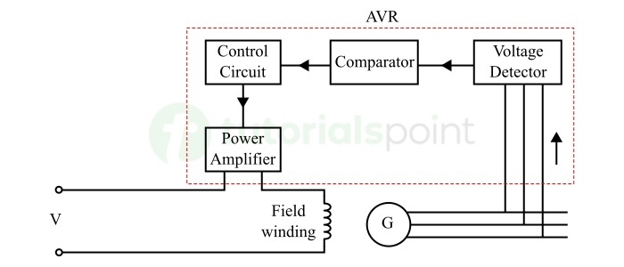 AVR 的功率放大器放大控制訊號,以便它可以有效地驅動發電機的勵磁系統。勵磁系統調整發電機中的磁場,從而調整輸出電壓。