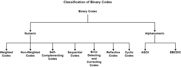 二進位制碼可以定義為數字、字母表中的字母以及一些特殊字元和控制服務,例如數字或字母數字程式碼。數字程式碼可以定義數字,而字母數字程式碼可以定義字母和數字。二進位制碼的分類如示意圖所示。