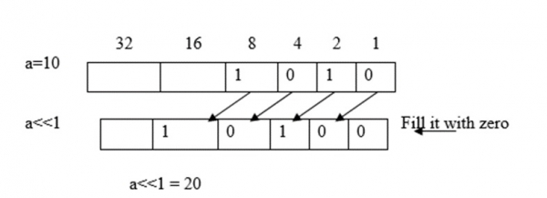 如果值左移一次,則其值加倍。就像我們每次左移都將數字乘以2一樣。