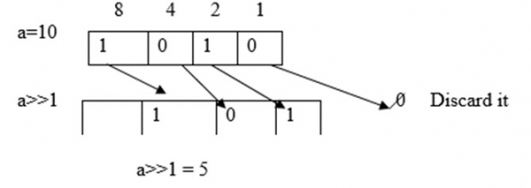例如,a = 10,則a>>1 = 5