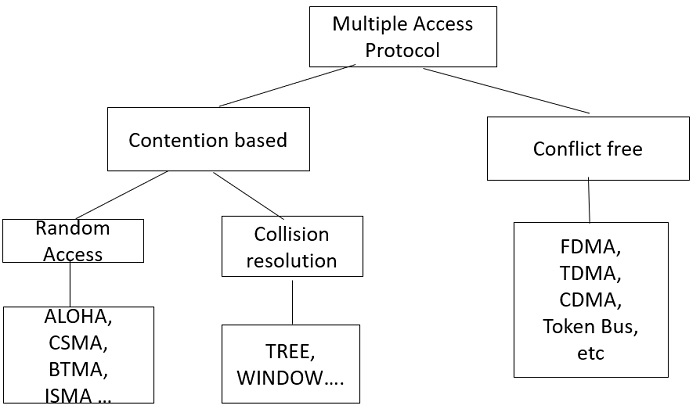 因此,參與衝突的所有幀都會丟失,並且在衝突間隔期間廣播通道會被浪費。為了解決此問題,實現了多路訪問協議。
