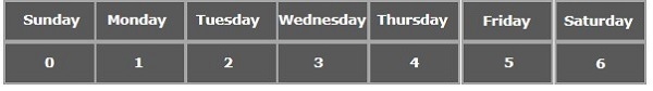 Value of constants: SUNDAY MONDAY TUESDAY WEDNESDAY THURSDAY FRIDAY SATURDAY