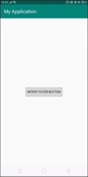 <?xml version="1.0" encoding="utf-8"?> <LinearLayout xmlns:android="http://schemas.android.com/apk/res/android" xmlns:app="http://schemas.android.com/apk/res-auto" xmlns:tools="http://schemas.android.com/tools" android:layout_width="match_parent" android:layout_height="match_parent" android:gravity="center" android:orientation="vertical" tools:context=".MainActivity"> <Button android:id="@+id/buton" android:layout_width="wrap_content" android:layout_height="wrap_content" android:text="intent filter button" /> </LinearLayout>
