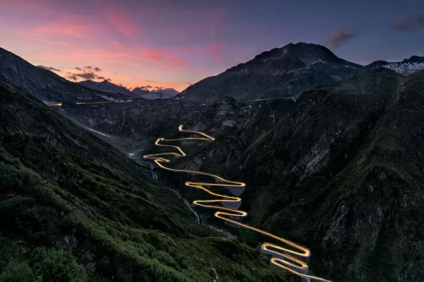 該山口位於瑞士中部。聖哥達山口是一個山區山口,海拔6860英尺。這條道路一年中的大部分時間都關閉,只有6月到10月開放。
