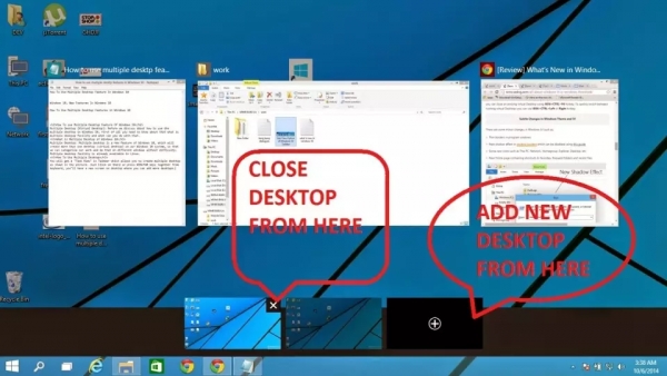微軟終於增加了建立和管理多個桌面的功能。你可以新增新的桌面,快速在它們之間移動視窗,並透過按 Win-Tab 在桌面之間切換。