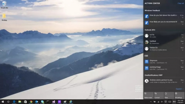大多數其他作業系統已經擁有通知中心概念有一段時間了。微軟終於在螢幕右下角添加了一個通知中心,你收到的所有通知都將顯示在此處。