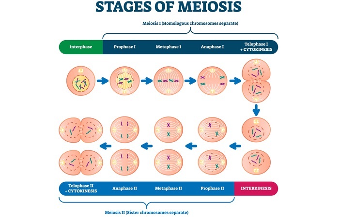 在減數分裂過程中,細胞中的染色體複製,然後分裂兩次,產生四個子細胞,每個子細胞包含的染色體數量是親本細胞的一半。此過程確保遺傳物質在子細胞之間平均分配,從而產生對稱雜交。