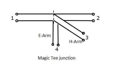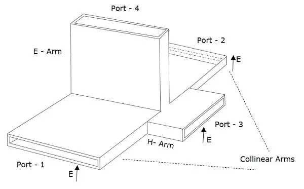 矩形波導的臂形成兩個埠,稱為共線埠,即埠1和埠2,而埠3稱為H臂或和埠或並聯埠。埠4稱為E臂或差埠或串聯埠。