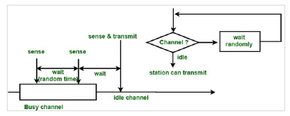 非持久被稱為 CSMA 協議的非主動版本,屬於 MAC(介質訪問控制)層。這裡擁有要傳送的幀的站點,該站點僅檢測通道。