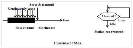 在這種方法中,要傳輸資料,站點需要持續檢測通道以檢查通道是繁忙還是空閒。
