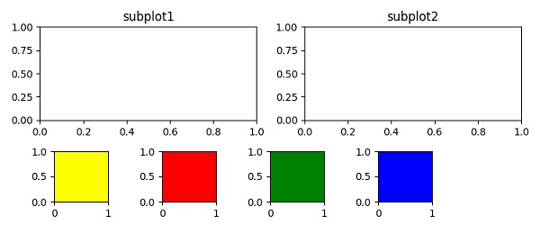 在nrows=2, ncols=2 的子圖排列中,向圖形中新增一條軸。在索引為 1 處,新增標題“subtitle1”,在索引為 2 處,新增標題“subplot2”。