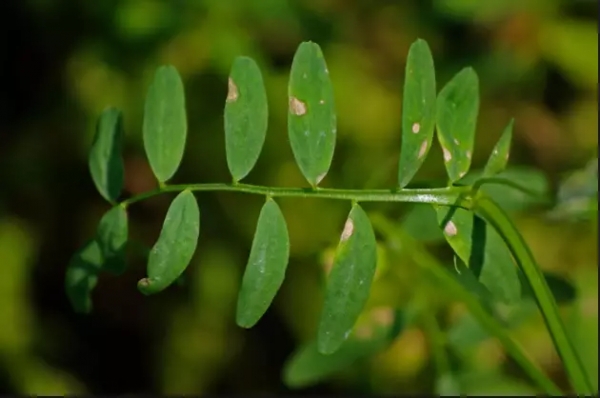 炭疽病 - 炭疽病是一種鳥眼斑真菌病害。它通常會形成小的枯斑,這些枯斑具有隆起的邊緣和凹陷的中心,顏色為粉紅色和棕色。症狀在豆莢上非常明顯,豆莢上會出現圓形、黑色或凹陷的斑點,可能會滲出粉紅色的粘液,隨著年齡的增長會發展成粉紅色的邊緣,無法控制植物的生長,導致植物在承受壓力時會在某個時刻死亡。