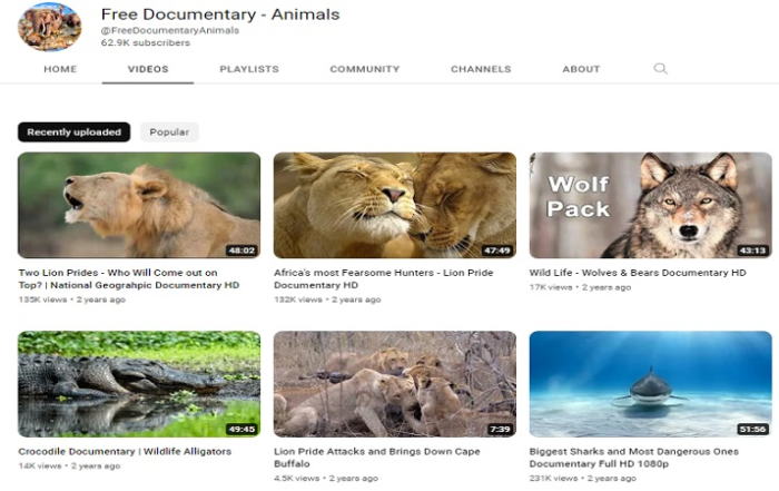 關於動物或自然的影片可以在動物類別中找到。這意味著它包括野生動物紀錄片、動物指南以及任何其他以野生動物為中心的內容。