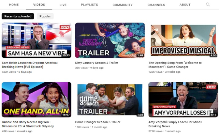 由於它能保持觀眾的興趣並使內容更令人愉快,喜劇是YouTube上相當受歡迎的領域,大多數YouTuber的目標是使他們的內容有趣。“Smosh”和“CollegeHumor”等平臺上的許多頻道都專注於即興表演和小品喜劇。