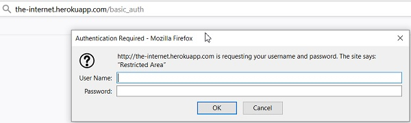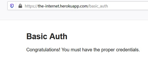 在上面的示例中,要使用 get 方法處理身份驗證彈出視窗,作為引數傳遞的 URL 應為:https://admin:admin@the−nternet.herokuapp.com/basic_auth。