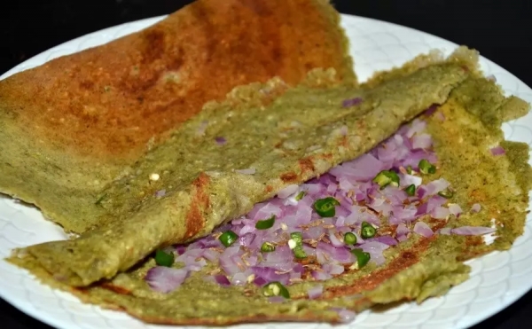 這就像多薩的翻版,區別在於 pesarattu 是用綠豆(也稱為 mung dal)製成的。這是安得拉邦居民家庭中非常常見的早餐食品。