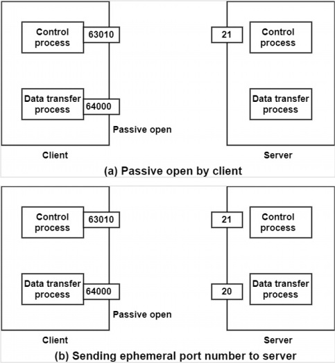 - 使用者(而不是伺服器)使用短暫埠發出一個被動開啟。