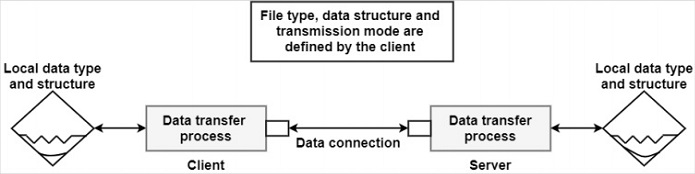 在此,客戶端必須透過傳輸模式定義要傳輸的檔案型別。在透過資料連線傳送文件之前,我們透過控制連線安排傳輸。