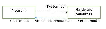 出於安全原因,使用者應用程式不允許訪問硬體資源,當它們需要執行任何 I/O 或需要一些記憶體時,它會請求作業系統。此請求是透過系統呼叫進行的。