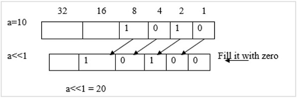 例如,a = 10,則 a<<1 = 20
