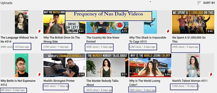 檢視 YouTube 頻道 Nas Daily 的釋出頻率。