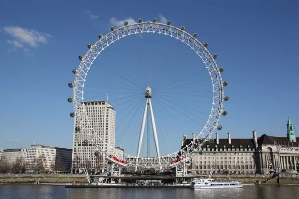 它是歐洲最高的摩天輪,高近 135 米,也是英國最受歡迎的景點之一。倫敦眼位於倫敦泰晤士河南岸禧年花園西側盡頭。它位於威斯敏斯特橋和亨格福德橋之間。